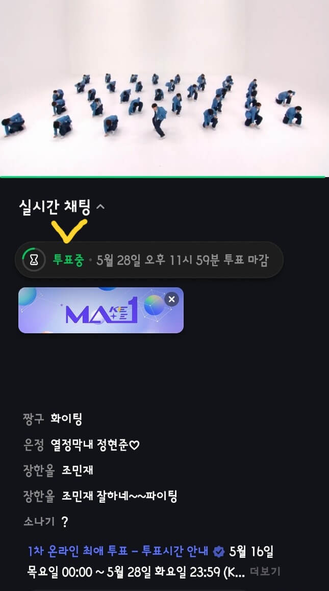 * 네이버 - MA1 검색 - 라이브LIVE 클릭 - 실시간 채팅창에서 [투표중]클릭
